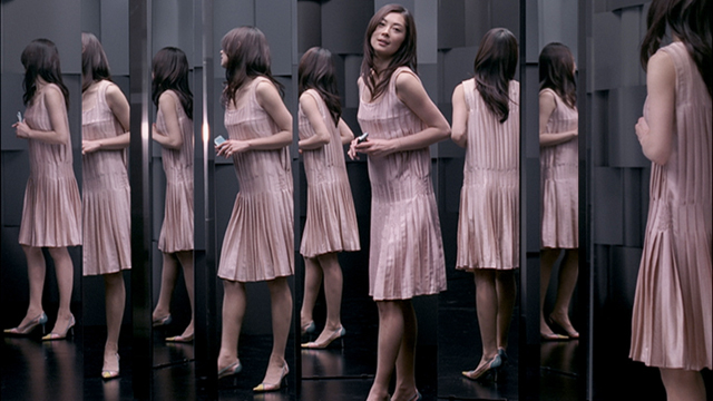 幾重にも重なった鏡に伊東美咲さんが映る幻想的な映像