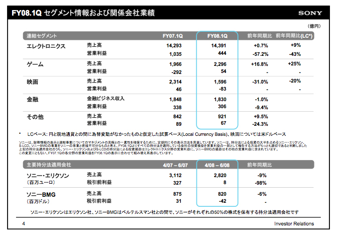 ソニー、2008年1Q連結業績説明会を開催 − PS3/PSP/BRAVIAが好調