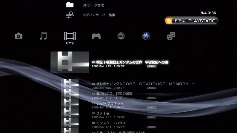 PS3に保存した映像を選択すればそのまま再生できる。