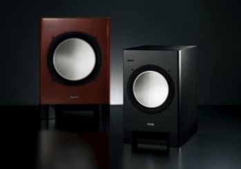 サブウーファー「SL-A250」。左は発売中のリアルウッド突き板仕上げ/右が9月19日発売のリアルウッド突き板仕上げモデル