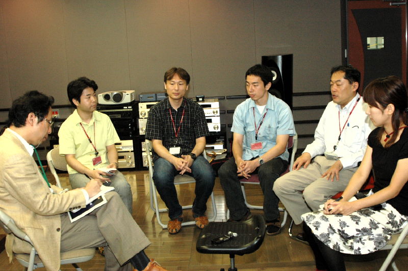 パイオニア新川崎本社にて担当者に話を伺う筆者(左)
