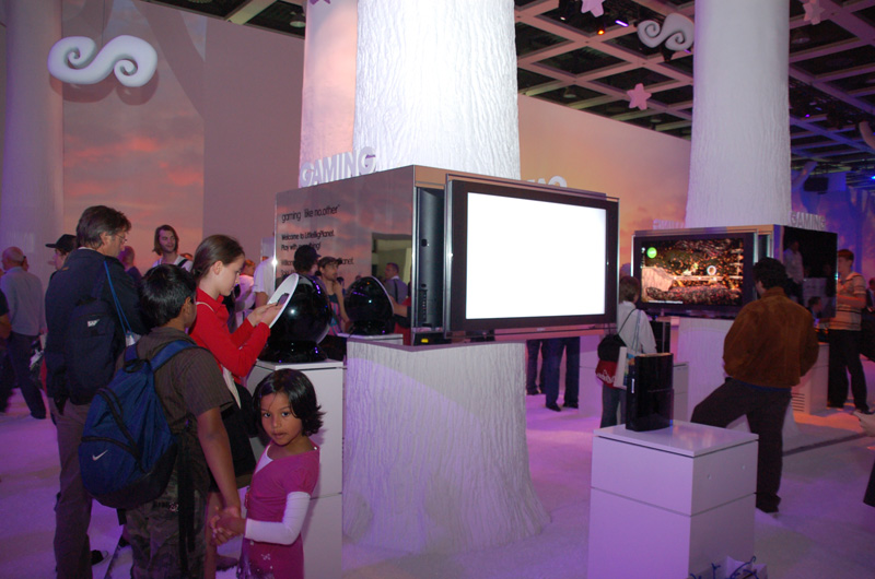 ゲームコーナーにかじりつく子供の来場者たち。取材は午前中に行ったのだが、君たち学校はどうした?