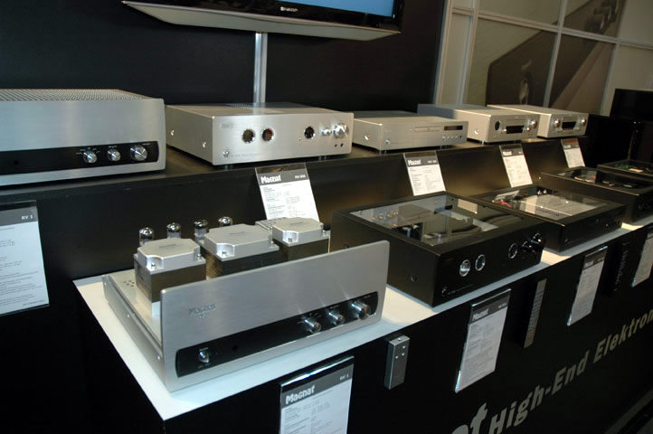 MAGNATのブースにはスピーカーシステムのほかに、真空管アンプ「RV1」(写真手前)をはじめとして、日本での展開も期待したいモデルがそろう