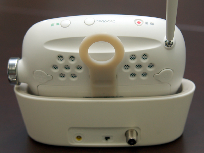 背面の様子。穴の空いたアタッチメントは取り外し可能で、下向きに取り付ければ機体が自立するためのスタンドになる