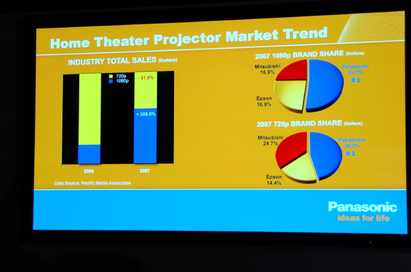 北米でのホームシアター用プロジェクターの金額シェアは1080p/720pモデルともにパナソニックがNo.1