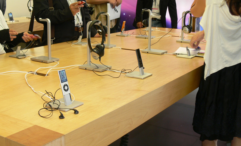 アップルストア銀座では新iPodシリーズの展示を開始。多くのユーザーが訪れ実機を手にとっていた