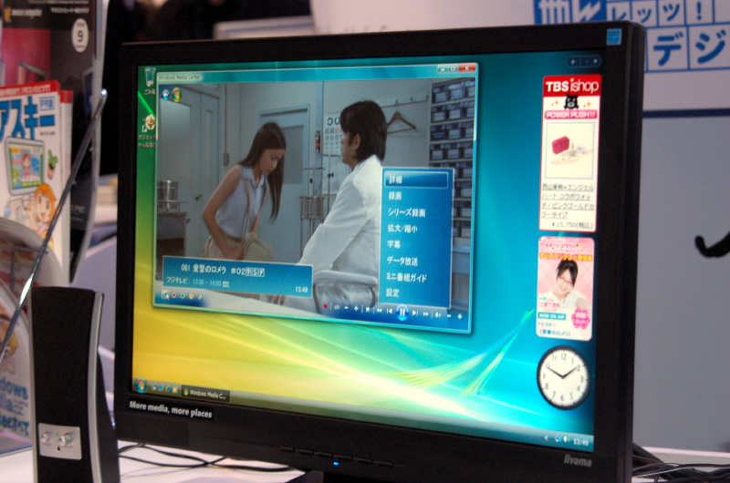 Windows Media Centerで地デジ視聴ができることをマイクロソフトブースで強くアピール