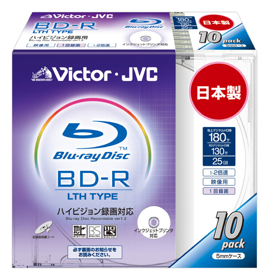ビクター、1〜2倍速対応の録画用・データ用「BD-R LTH TYPE」を発売