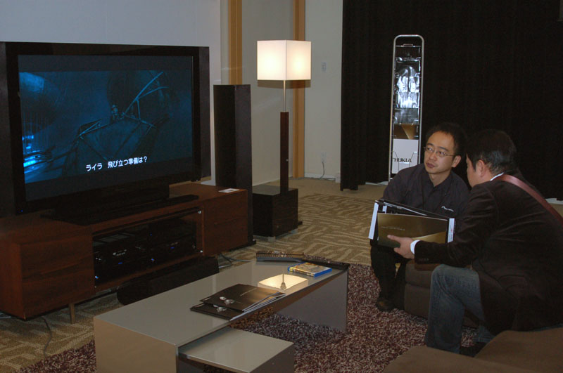 インテリアメーカーと協力したラグジュアリーな雰囲気のブースにパイオニア製品が溶け込んでいる