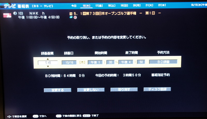 EPGから任意の番組の録画を選択すると、画面のように様々な設定が行える画面に遷移する