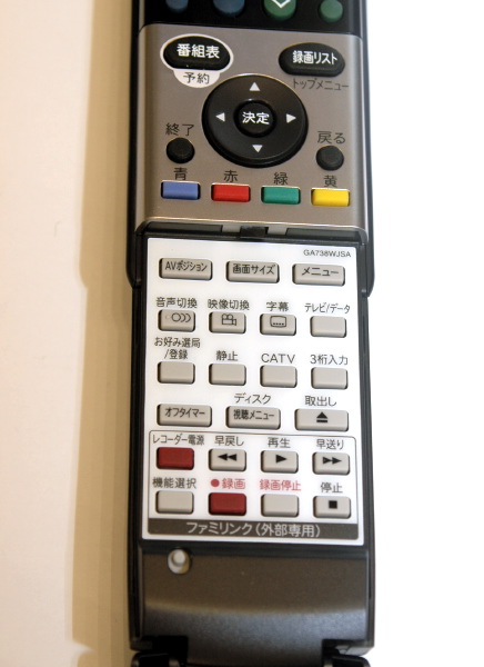 フラップを開けるとAQUOSファミリンクなどのボタンが現れる