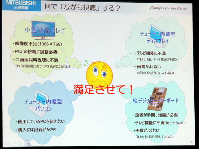 現行の各システムでは"ながら視聴”に適さない面があると同社は考えている