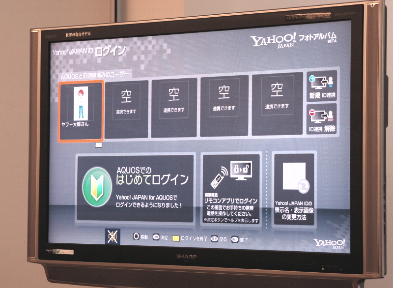 Yahoo! Japan for AQUOSが機能強化 − ログインを可能にし写真共有サービスなど開始