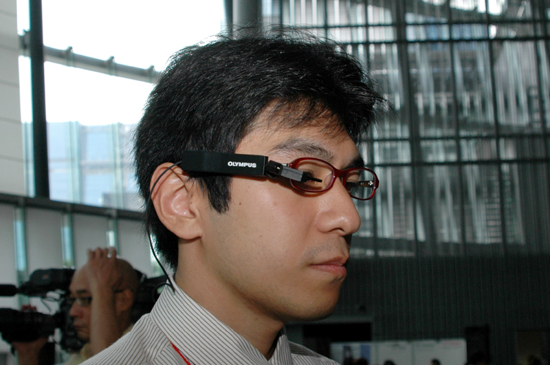 「モバイルEye-Trek」。レンズに被さるように備えられた細長いものが投影デバイス