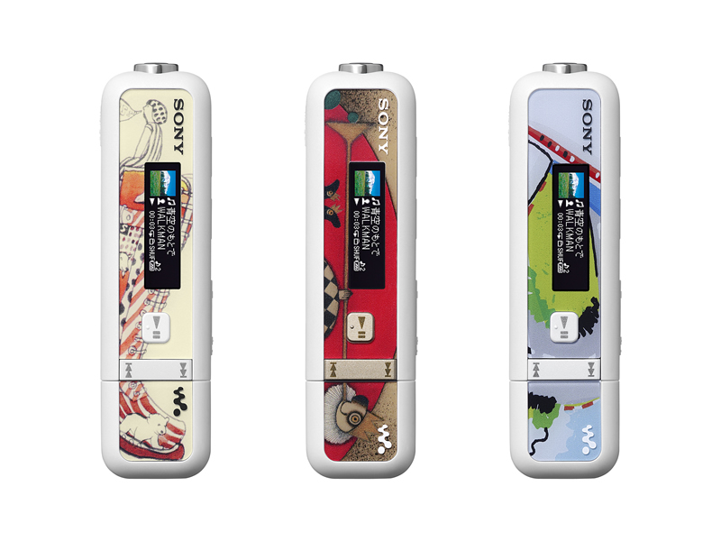 NW-E023F。左から宮原氏、igu氏、きたざわ氏デザインのもの(以下、ヘッドホンと携帯電話カバーも同様の順番)