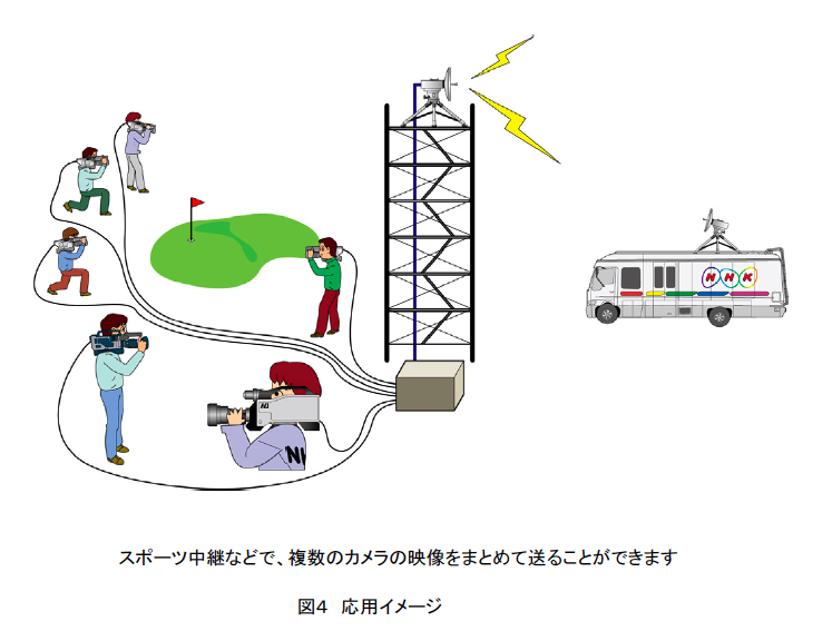 HOME > ニュース > AV&ホームシアターニュース 超高速無線伝送への利用へ前進 NHK、非圧縮ハイビジョン信号の120GHz帯無線伝送に成功 Phile-web編集部 2008年11月25日 前の写真へ 使用用途のイメージ。複数台のカメラの映像をまとめて伝送 前の写真へ この写真の記事へ 関連リンク NHK放送技術研究所 マイクロウェーブ展2008