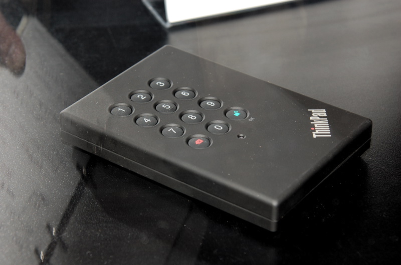 Lenovoは、128ビットの暗号がかけられ、テンキーで解除できるポータブルHDDドライブを展示