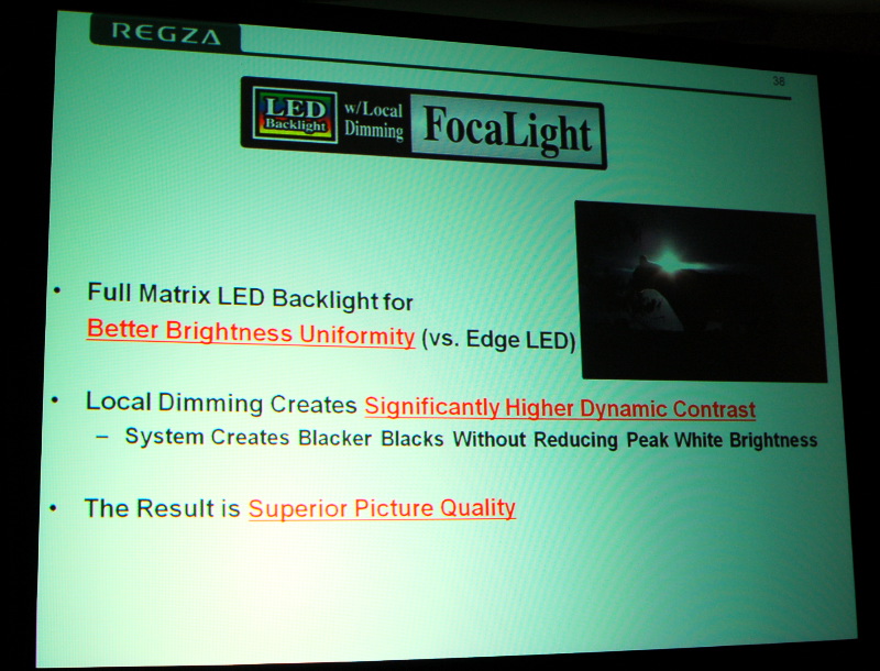 HOME > ニュース > AV&ホームシアターニュース CES2009レポート <東芝プレスカンファレンス>CELL TVの詳細を明らかに − 2010年には4K2Kモデルも投入予定 Phile-web編集部・風間 2009年01月08日 前の写真へ 次の写真へ SVシリーズにはLEDバックライトが搭載されている 前の写真へ 次の写真へ この写真の記事へ 関連リンク International CES 2009ホームページ CES 2009レポート一覧