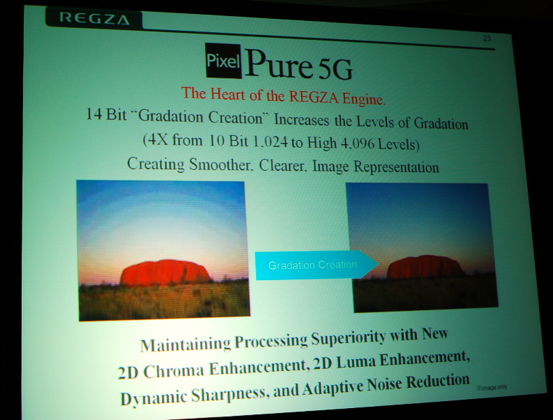 HOME > ニュース > AV&ホームシアターニュース CES2009レポート <東芝プレスカンファレンス>CELL TVの詳細を明らかに − 2010年には4K2Kモデルも投入予定 Phile-web編集部・風間 2009年01月08日 前の写真へ 次の写真へ 14ビット階調処理技術「PURE 5G」を搭載 前の写真へ 次の写真へ この写真の記事へ 関連リンク International CES 2009ホームページ CES 2009レポート一覧