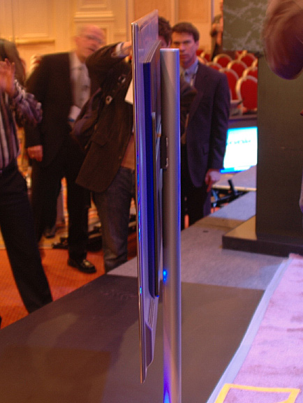 横からみた試作機のパネル。その薄さは来場者を大いに驚かせた