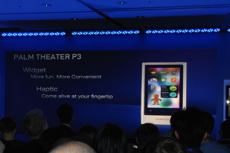 HOME > ニュース > AV&ホームシアターニュース CES2009レポート <サムスンプレスカンファレンス>ネット連携させた薄さ6.5mmのLED液晶テレビを参考出展/SSD搭載のビデオカメラなども発売 ホームシアターファイル編集部・井田 2009年01月09日 前の写真へ 次の写真へ MP3プレーヤーにはアプリケーションを追加でき、タッチパネルをつかった指での操作が可能になる 前の写真へ 次の写真へ この写真の記事へ 関連リンク International CES 2009ホームページ CES 2009レポート一覧