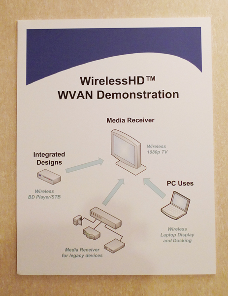 HOME > ニュース > AV&ホームシアターニュース CES2009レポート <サイビーム>プライベートブースにてWireless HD規格の無線伝送デモを公開 AVレビュー編集部・阿部 2009年01月09日 前の写真へ 次の写真へ デモ全体のイメージ図 前の写真へ 次の写真へ この写真の記事へ 関連リンク International CES 2009ホームページ CES 2009レポート一覧