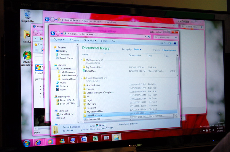 HOME > ニュース > AV&ホームシアターニュース CES2009レポート <マイクロソフト>「Windows 7」初の一般公開 − DLNA1.5に「完全準拠」 Phile-web編集部・風間 2009年01月10日 前の写真へ 次の写真へ Windows 7の画面 前の写真へ 次の写真へ この写真の記事へ 関連リンク International CES 2009ホームページ CES 2009レポート一覧