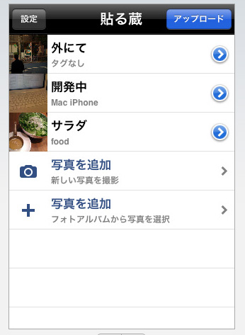 HOME > ニュース > AV&ホームシアターニュース FlickrやPicasaなど複数サイトへクロスアップロードも可能 ウノウ、複数写真をまとめてアップできるアプリ「貼る蔵 for iPhone」を配布 Phile-web編集部 2009年01月26日 次の写真へ アプリを起動し、撮影した写真や保存済の写真を簡単にアップロードできる 次の写真へ この写真の記事へ 関連リンク ウノウの詳細情報ページ ウノウ(株)