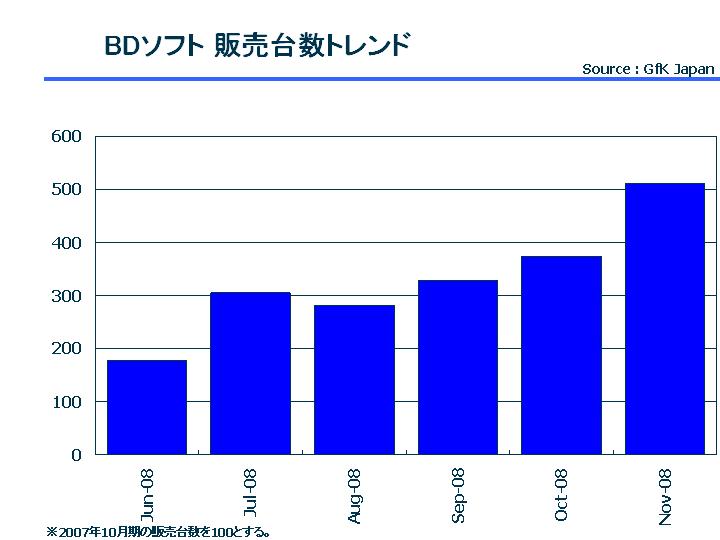 HOME > ニュース > AV&ホームシアターニュース 「BDマイスタークイズ」についてもアナウンス BDA、BD製品の販売状況を公表 − レコーダー/メディアは倍増、ソフトも37%増 Phile-web編集部 2009年01月30日 前の写真へ 次の写真へ BDソフトの販売台数トレンド 前の写真へ 次の写真へ この写真の記事へ 関連リンク ブルーレイ・ディスク・アソシエーション ブルーレイディスク マイスタークイズ 特設サイト