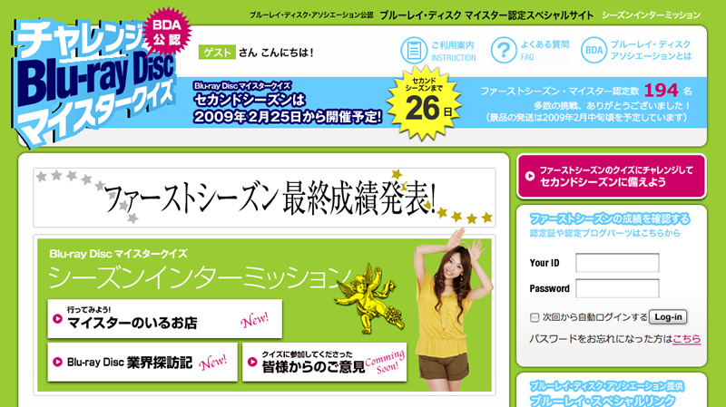 HOME > ニュース > AV&ホームシアターニュース 「BDマイスタークイズ」についてもアナウンス BDA、BD製品の販売状況を公表 − レコーダー/メディアは倍増、ソフトも37%増 Phile-web編集部 2009年01月30日 前の写真へ 「ブルーレイディスク マイスタークイズ」特設サイトトップページ 前の写真へ この写真の記事へ 関連リンク ブルーレイ・ディスク・アソシエーション ブルーレイディスク マイスタークイズ 特設サイト