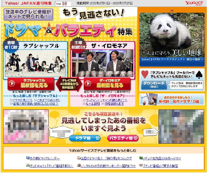Yahoo! JAPAN内の特集ページ「もう見逃さない!ドラマ&バ ラエティ特集」