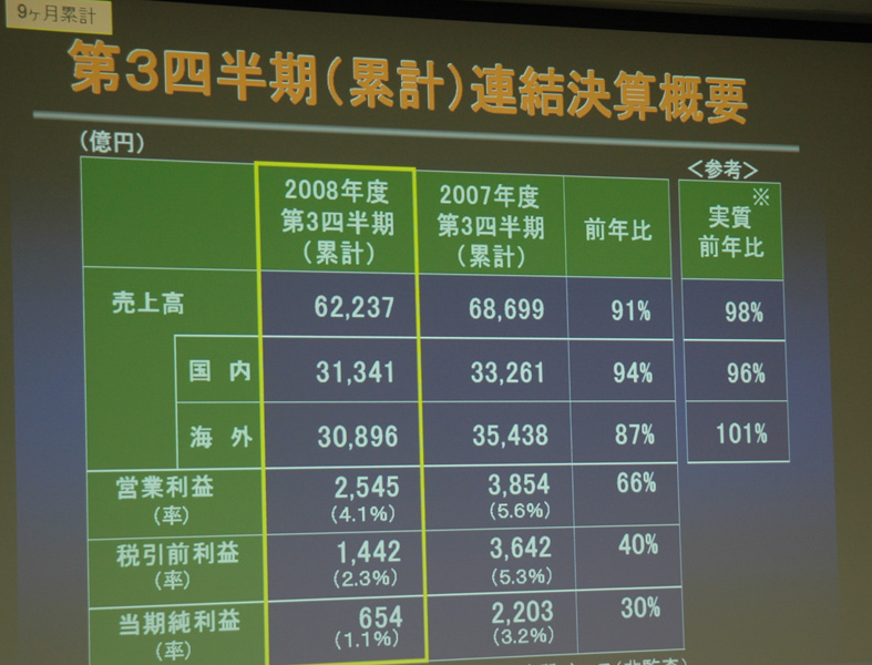 過去最大3,450億円規模の構造改革実施へ −パナソニックが3Q連結業績を発表