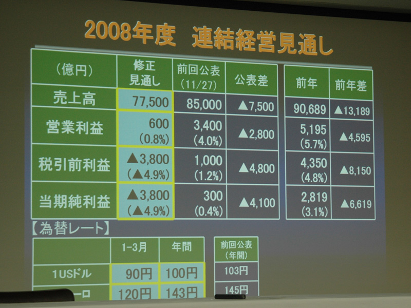 08年度の連結経営見通しを下方修正