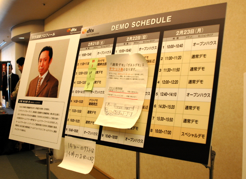 HOME > ニュース > AV&ホームシアターニュース A&Vフェスタ2009レポート <DTS>5分で整理券配布終了!大盛況のDTS-HD Master Audioデモをレポート Phile-web編集部 2009年02月21日 前の写真へ 次の写真へ 本日午前中のデモ整理券は5分で配布を終えてしまったという。参加希望の方はフェスタ会場に到着したらまず配布時間をチェックしておこう 前の写真へ 次の写真へ この写真の記事へ 関連リンク A&Vフェスタ2009 dts Japan DTSの最新情報をお届け「DTS NOW サラウンド最前線」