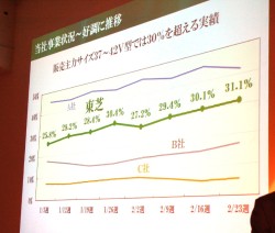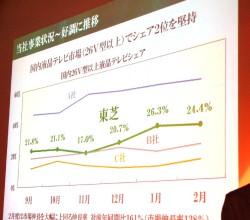 HOME > ニュース > AV&ホームシアターニュース 最も厳しい環境基準をクリア 東芝、“レグザ”C8000シリーズの説明会を開催 − Hシリーズ新モデルも参考出展 Phile-web編集部 2009年03月04日 前の写真へ 次の写真へ (株)東芝 テレビ事業部 事業部長の大角正明氏とC8000シリーズ 前の写真へ 次の写真へ この写真の記事へ 関連リンク (株)東芝 C8000シリーズのニュースリリース Phile-webニュース【東芝、高画質プラス省エネを図った“レグザ”C8000シリーズ3機種を発売 】