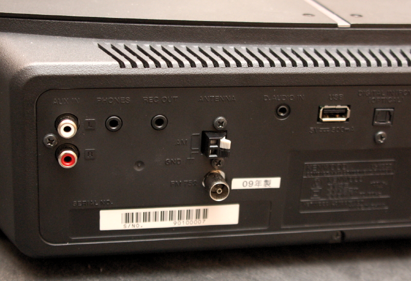 USB、D.AUDIO IN、AUX、光デジタル入力端子を装備
