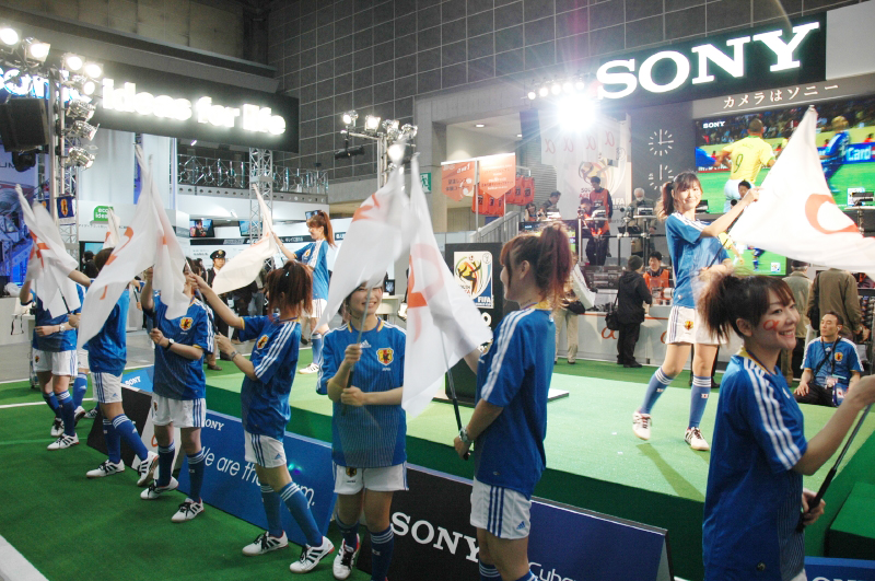 サッカーワールドカップのムード一色のソニーブース