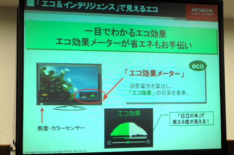 HOME > ニュース > AV&ホームシアターニュース “Yes,Wooo Can!” 「できる録画テレビ」で視聴スタイルを変える − Wooo新モデルが目指すテレビ進化形 Phile-web編集部 2009年04月09日 前の写真へ 次の写真へ エコ効果メーターを表示させることもできる 前の写真へ 次の写真へ この写真の記事へ 関連リンク HITACHI Wooo World Phile-web「Wooo WoRLD」