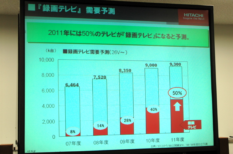 HOME > ニュース > AV&ホームシアターニュース “Yes,Wooo Can!” 「できる録画テレビ」で視聴スタイルを変える − Wooo新モデルが目指すテレビ進化形 Phile-web編集部 2009年04月09日 前の写真へ 次の写真へ 2011年には「録画テレビ」が50%を占めると予測 前の写真へ 次の写真へ この写真の記事へ 関連リンク HITACHI Wooo World Phile-web「Wooo WoRLD」
