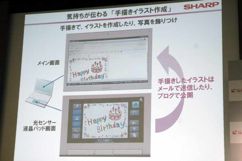 シャープ、光センサー液晶のタッチパッドを搭載した10.1型ノートPC“Mebius”を発売