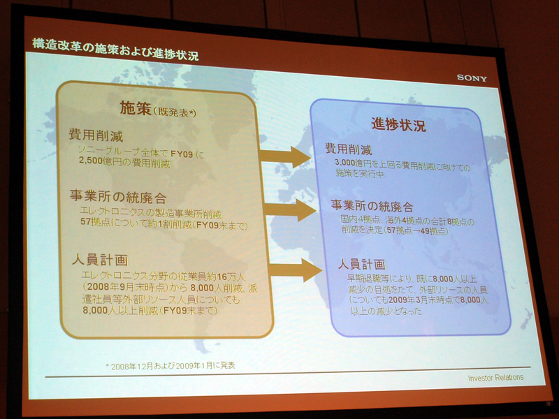 ソニー、2008年度決算を発表 - 今期は構造改革で損失縮小見込む