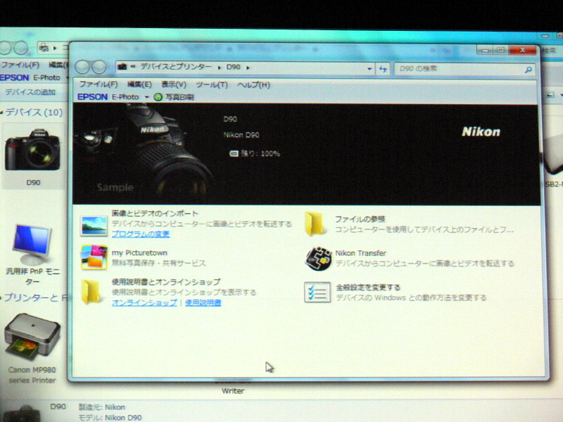 ニコンのデジカメ試作機の「デバイスステージ」画面を表示したところ
