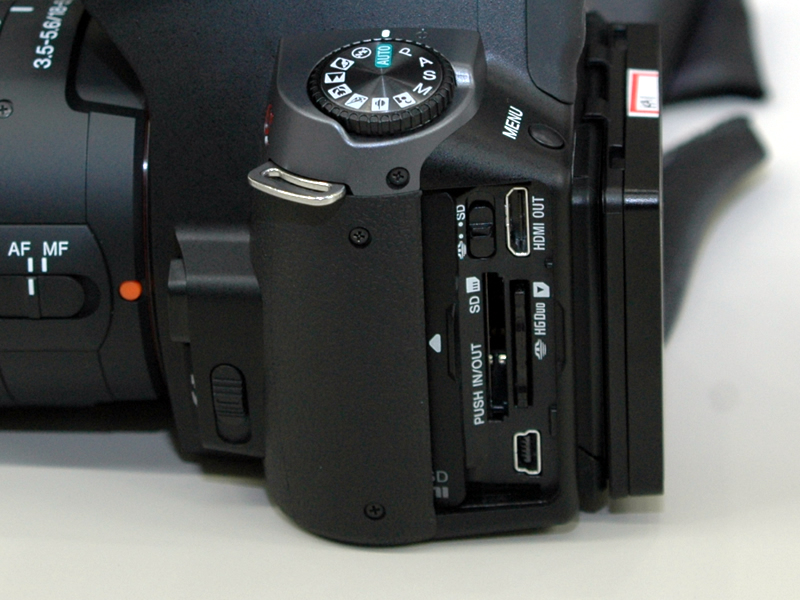 側面にメモリースティック/SDカードスロットやHDMI端子を搭載