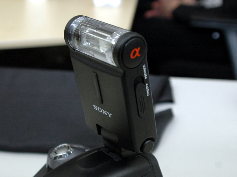 別売のフラッシュ。側部にあるスイッチで光源の向きを変更可能。ダイレクト照射かバウンスさせるかを選択できる