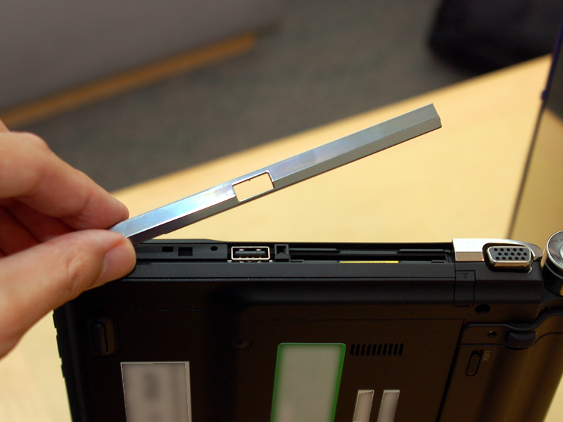 側部右側にB-CASスロットか光学ドライブを搭載。通常時はカバーで覆われている
