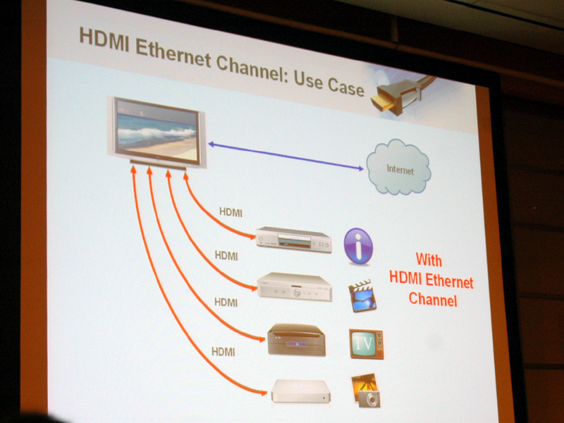 HOME > ニュース > AV&ホームシアターニュース 音声信号の相互送信対応、マイクロコネクタも登場 HDMI 1.4の詳細が明らかに − イーサネットを統合、3D/4K2Kもサポート Phile-web編集部 2009年05月28日 前の写真へ 次の写真へ 例えばネットワーク機能付きテレビにつなげれば、HDMIケーブルでつないだ機器が全てネットワークでつながる 前の写真へ 次の写真へ この写真の記事へ 関連リンク 本件のニュースリリース HDMI Licensing,LLC