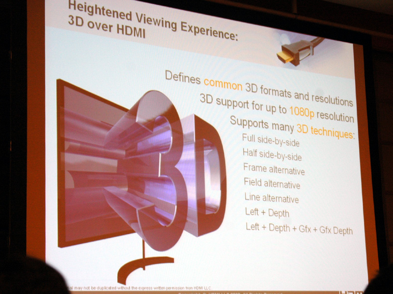 HOME > ニュース > AV&ホームシアターニュース 音声信号の相互送信対応、マイクロコネクタも登場 HDMI 1.4の詳細が明らかに − イーサネットを統合、3D/4K2Kもサポート Phile-web編集部 2009年05月28日 前の写真へ 次の写真へ 3D映像信号の伝送にも対応 前の写真へ 次の写真へ この写真の記事へ 関連リンク 本件のニュースリリース HDMI Licensing,LLC