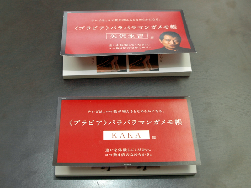 HOME > ニュース > AV&ホームシアターニュース 「<ブラビア>パラパラマンガメモ帳」の配布も ソニー、矢沢永吉さんの“BRAVIA”特別動画をWebで公開 - 新CMも明日からOA Phile-web編集部 2009年06月12日 前の写真へ 次の写真へ ポスターに貼り付けられる「<ブラビア>パラパラマンガメモ帳」 前の写真へ 次の写真へ この写真の記事へ 関連リンク “BRAVIA” Webサイト ソニー 直販サイト ソニースタイル
