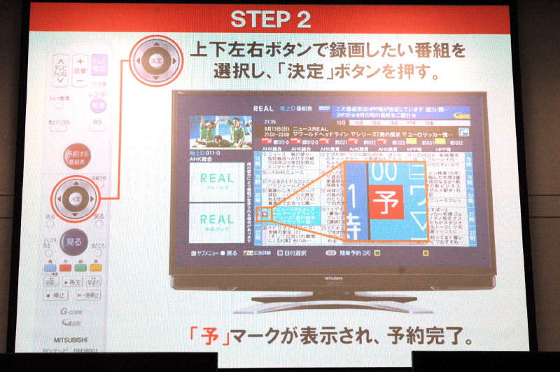 次に録画したい番組選択して「決定」ボタンを押すと予約が完了する