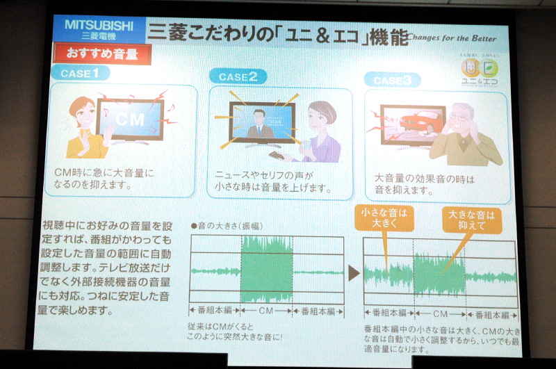 CMと番組本編の音量差などを自動的に調整する「おすすめ音量」機能